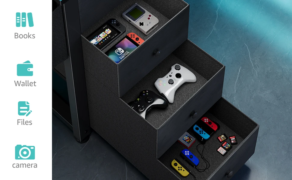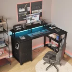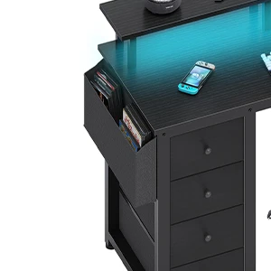 *The computer desk includes a built-in power strip with 3 power outlets & 2 USB charging ports for computer, monitor, gaming gear, pad, phone and other electronic devices.